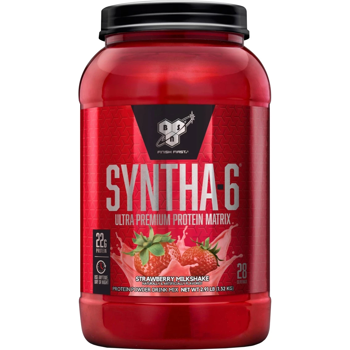 BSN Syntha 6 Ultra Premium Protein Matrix 2.91 lb. allows the advanced bodybuilder or athlete to easily meet his or her daily protein needs without feeling stuffed all day. Delivers amino acid nitrogen to your body for up to seven hours. Contains no aspartame or added sugars. Model: 1048109.