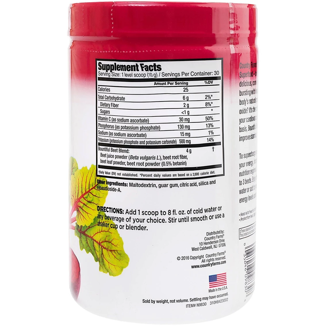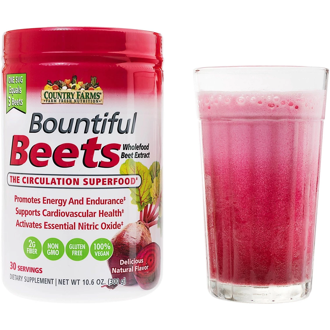 - Includes dietary fiber, Vitamin C, beet juice powder and beet root fiber