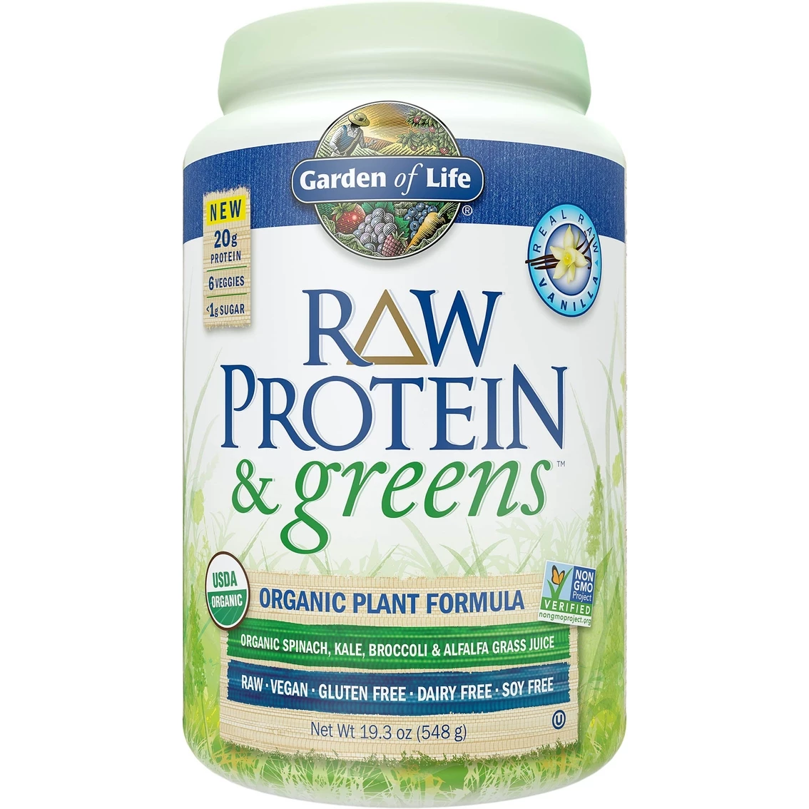 Garden of Life Raw Protein & Greens is a certified USDA organic and non-GMO project-verified blend of clean, organic plant protein providing 20 grams of delicious, smooth protein derived from organic pea, organic sprouted brown rice, organic chia, organic navy bean, organic lentil bean and organic garbanzo bean. It’s uniquely blended with six nutrient-rich, energizing, organic greens including organic alfalfa grass juice, organic spinach, organic kale, organic broccoli, organic carrot and organic beets. Flavored with delicious organic raw and organic flavors, it is sweetened with organic stevia extract (leaf) to deliver less than 1 gram of sugar.