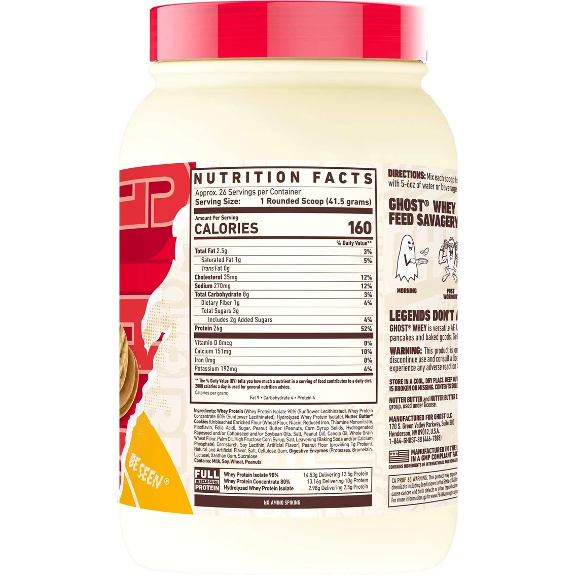 | Ingredients | Whey Protein (Whey Protein Isolate 90% (Sunflower Lecithinated), Whey Protein Concentrate 80% (Sunflower Lecithinated), Hydrolyzed Whey Protein Isolate), Nutter Butterยฎ Cookies (Unbleached Enriched Flour (Wheat Flour, Niacin, Reduced Iron, Thiamine Mononitrate, Riboflavin, Folic Acid), Sugar, Peanut Butter (Peanuts, Corn Syrup Solids, Hydrogenated Rapeseed and/or Cottonseed and/or Soybean Oils, Salt, Peanut Oil), Canola Oil, Whole Grain Wheat Flour, Palm Oil, High Fructose Corn Syrup, Leavening (Baking Soda and/or Calcium Phosphate), Cornstarch, Soy Lecithin, Artificial Flavor), Peanut Flour, Natural and Artificial Flavor, Cellulose Gum, Digestive Enzymes (Proteases, Bromelain, Lactase), Xanthan Gum, Sucralose. |