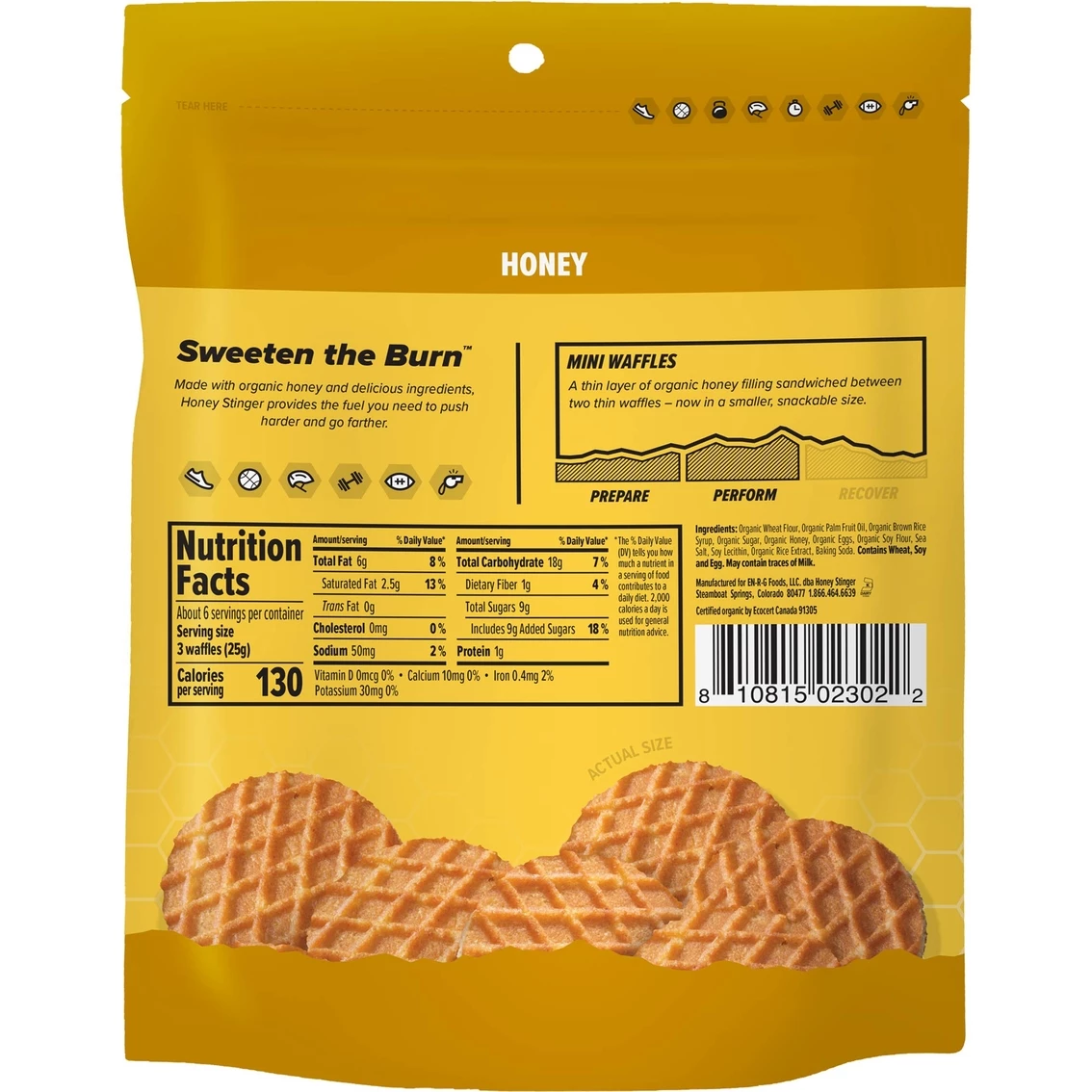Honey Stinger’s classic honey waffles, now in a snackable size and a resealable bag. With a thin layer of honey sandwiched between two waffles, our number one selling waffle flavor will satisfy your taste buds and keep you going as an afternoon snack, during your favorite activity, or with a cup of coffee.