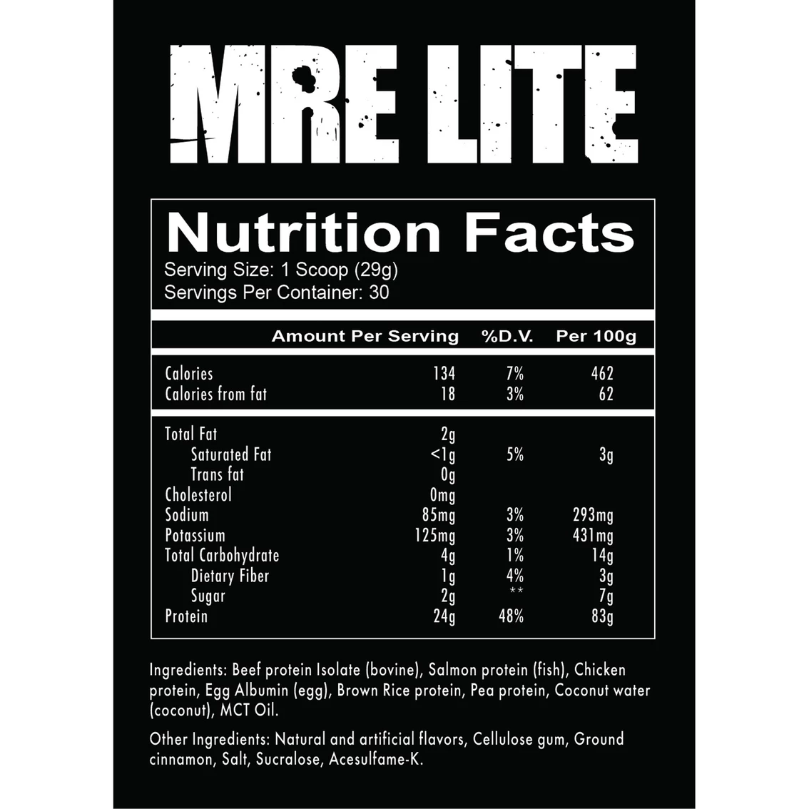 MRE Lite will deliver the same great taste and excellent source of whole foods as REDCON1’s original MRE formula, but with much lower carbohydrates for the person keeping a close and watchful on his or her macronutrients. That means if you’re dieting and on restricted calories, you too, can enjoy the wonders that MRE can do for your physique. MRE Lite contains no whey protein allowing for easy digestion. Instead, you’ll get beef, salmon, egg, and chicken protein. Plus, the healthy benefits of brown rice protein, pea protein, and MCT oil. Each serving is just 134 calories with 24g of protein and just 2g of sugar.